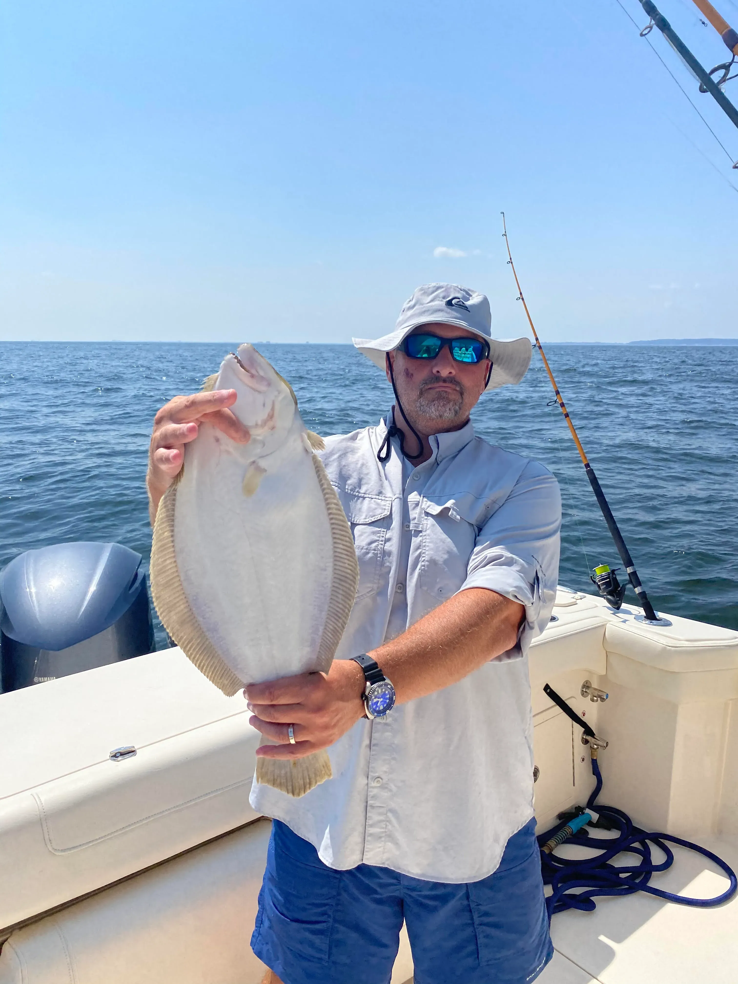 Summer flounder, known locally as fluke, are the flatfish that test your patience and reward your persistence. Peak season runs May through September, with the biggest "doormat" fluke often caught during summer months in 30-60 feet of water. These ambush predators lie buried in sand waiting to crush baitfish, and their strike feels like you've hooked bottom until they start that head-shaking fight. A good fluke will tape 20+ inches and provide excellent table fare, making them highly sought after by local anglers.